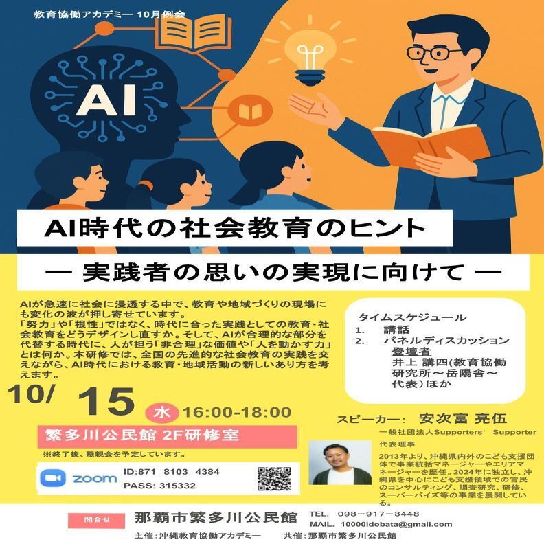 今回のテーマは、ひとことで言うと「AI時代に、社会教育やこども支援の現場がどう変わっていくか、どう変えていくか」 というものです。