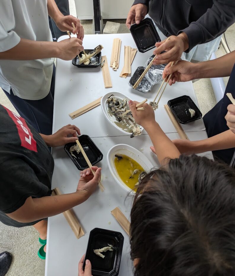 餌やりや計量といった作業に加え、最後にはミーバイの試食も行われ、こどもたちは五感を通じて学ぶ体験を得ることができました。